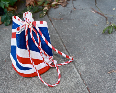 Observe the charming drawstring bag made out of a Union Jack linen dishcloth. This was a b*day gift from my friend Kris Laskey many years ago. Kris Laskey is the genius behind the Sac-town label, BUTT UGLY which you may know is a favorite of mine.