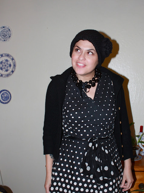 Amazing! You remind me of the little old ladies in Andalucia (for whom I have a big soft spot) with their polka dot dresses, stack heeled shoes and knee high sheer tights! In a good way that is! The dress and hat are very cute. You're just missing a little wooden painted fan now.