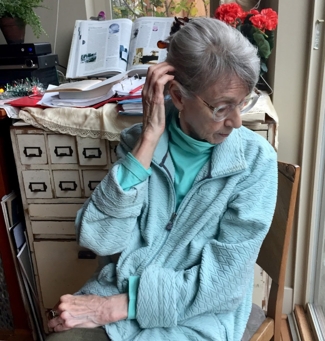 While we've been chatting from phone every other week or so, our visits have been curtailed; I've only visited once this year, about a month and a half ago, on a Seattle sunny spring day, with us properly socially distanced on her back patio, me talking through a cotton bandana.